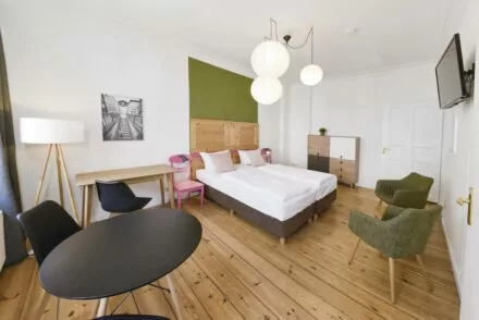 All our studios have  the typical charm of typical traditonal Berlin building with wooden floors and a French balcony. Relax after a day of sightseing and enjoy the comfort of your own fully equipped kitchen and bathroom. Whether for a few days or several weeks, the studio offers a home in Berlin, even if you are only visiting. With their ideal very central location, you are just in the right spot of the city.