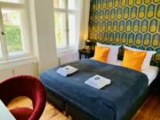 En nuestras acogedoras habitaciones dobles, a pesar de su céntrica ubicación, sólo se oye el gorjeo del ruiseñor, gracias a la práctica ubicación en el patio, con nosotros no se mete la pata y está en buenas manos todo el día.