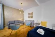 Das Studio besteht aus einem großen Raum mit Holzboden und großem hübschem Altbaufenster. Es verfügt über 2 Einzelbetten, die zu einem Doppelbett kombiniert werden können. Es gibt auch einen Fernseher, eine Kommode und einen Kleiderschrank für Ihre Sachen. Die Küche verfügt über allerlei Zubehör, wie Töpfe, Pfannen, Mikrowelle, Kühlschrank, Backofen und Herd sowie Kühlschrank. Das Bad ist modern und hat eine Dusche. Ideal geeignet ist die Wohnung für ein Paar, Arbeitskollegen oder Freunde, die sich eine Wohnung teilen möchten. Das Haus hat keinen Lift.