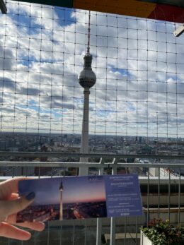 Um einen einzigartigen Ausblick auf Berlin zu haben empfiehlt sich die Dachterrasse des Park Inn, die auf über 100 Meter Höhe liegt.