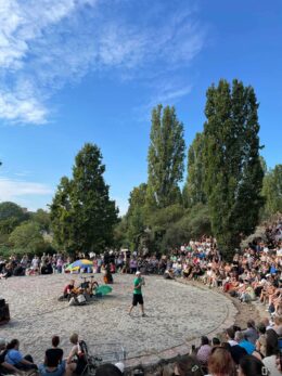 Die Mauerpark Karaoke in Berlin ist ein echtes Highlight, wo Hobby-Sängerinnen und Hobby-Sänger und professionelle Performer und Performerinnen gleichermaßen die Bühne erobern und das Publikum mit ihrer Energie begeistern – ein unvergessliches Erlebnis für alle Besucher!